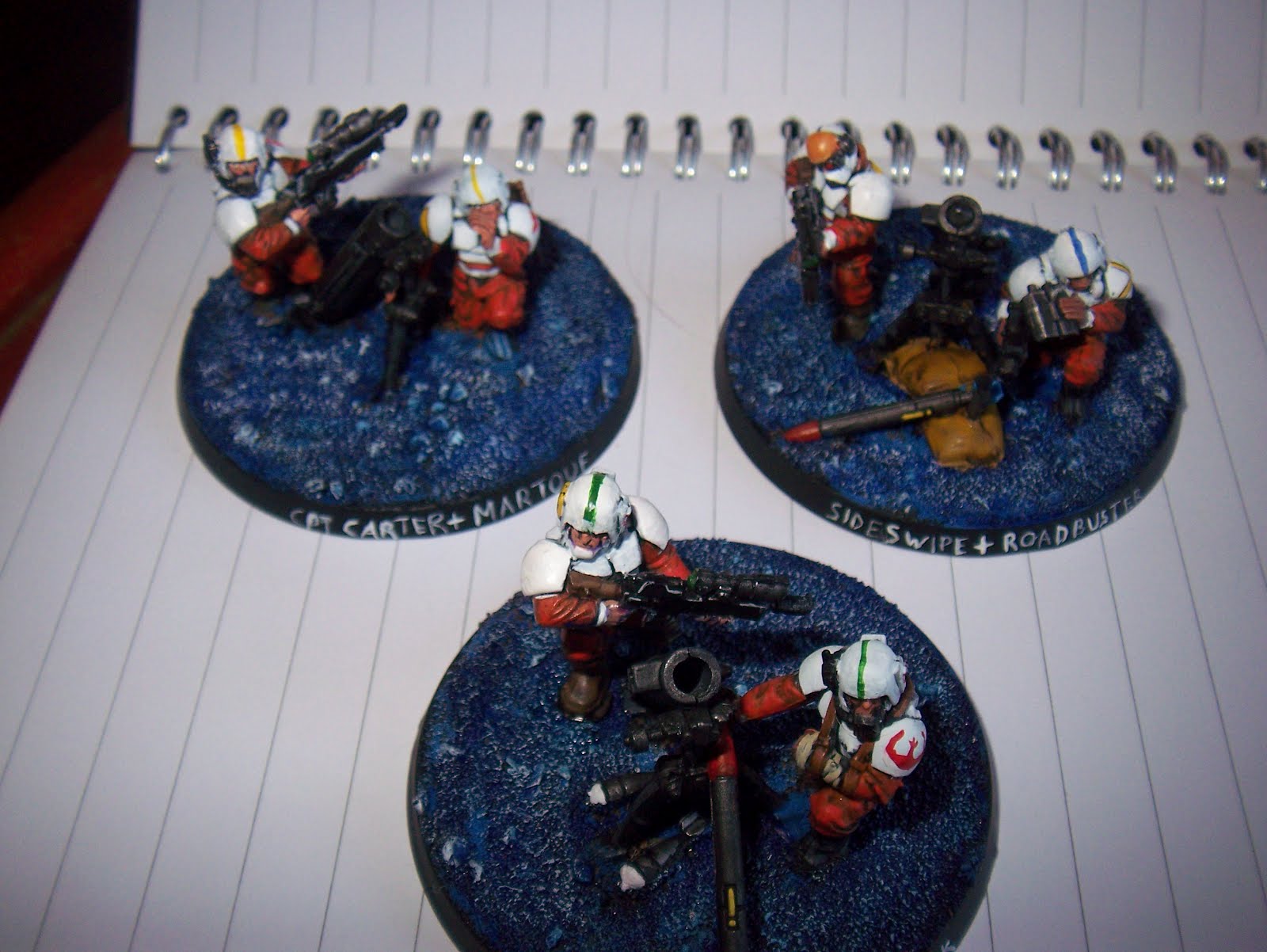 These are basically of the sergeants from both squads. One of which has been done, (1st pic) and the other hasn’t (2nd pic). The wash and following layers, though you can’t see it from the pictures that clearly have really added that definition that I was craving and I'm really pleased with the outcome for amount of effort I've put in. It only took me about 90 mins for the first 8, which for me is fast!
